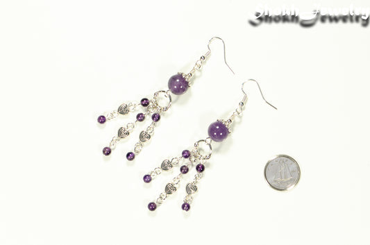 Statement Amethyst and Heart Chandelier Earrings, February Birthstone Jewelry