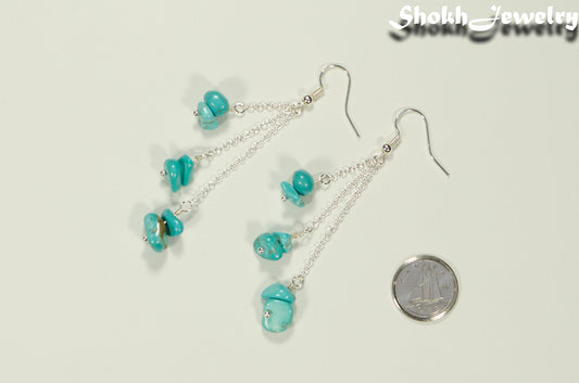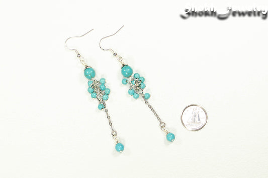 Long Stainless Steel Chain and Turquoise Howlite Earrings