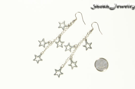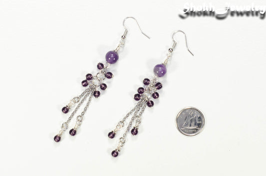 Long Stainless Steel Chain and Amethyst Earrings, February Birthstone Jewelry