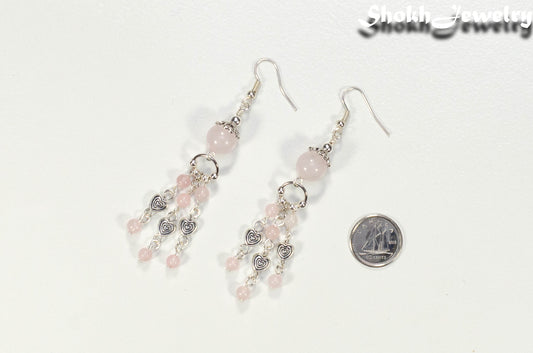 Long Stainless Steel Chain and Rose Quartz Earrings