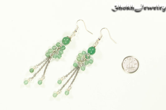 Long Stainless Steel Chain and Green Aventurine Earrings