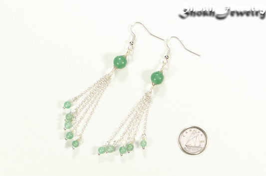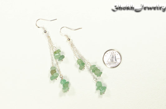 Long Silver Plated Chain and Green Aventurine Crystal Chip Earrings