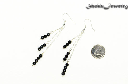 Silver Plated Chain and Black Obsidian Crystal Earrings