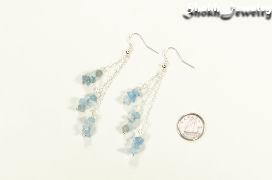 Long Silver Plated Chain and Aquamarine Crystal Chip Earrings, March Birthstone Jewelry