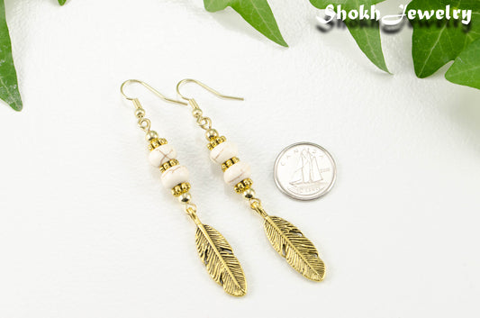 Statement White Howlite And Gold Feather Earrings