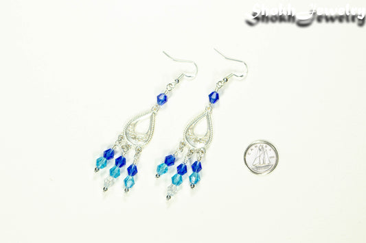 Ombre Blue Glass Crystal Chandelier Earrings
