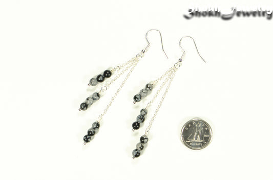 Silver Plated Chain and Snowflake Obsidian Stone Earrings
