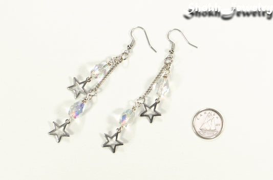 Long Silver Plated Chain and Garnet Crystal Chip Earrings, January Birthstone Jewelry