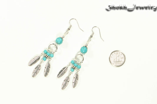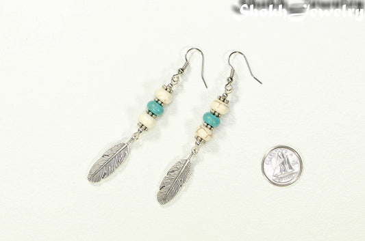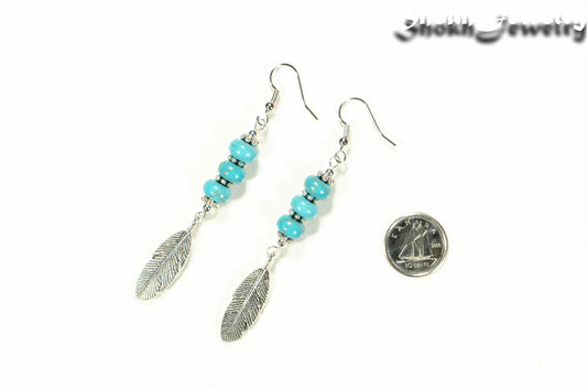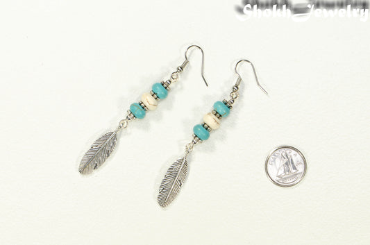 Statement Tibetan Silver Feather And Turquoise Howlite Earrings