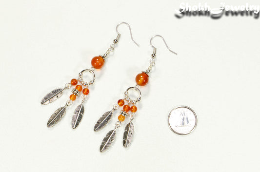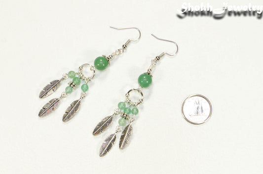 Long Stainless Steel Chain and Green Aventurine Earrings