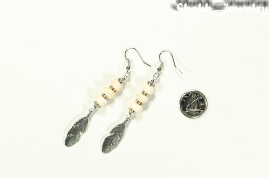 Statement White Howlite And Tibetan Silver Feather Earrings