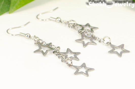 Long stainless steel chain and star earrings