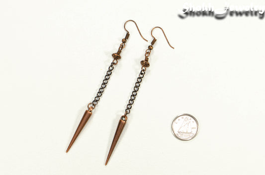 Statement chain and antique copper spike earrings