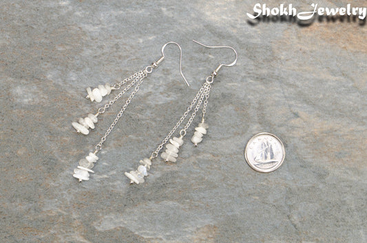Long Silver Plated Chain and Moonstone Chip Earrings