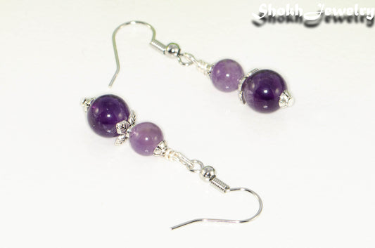 Small Natural Amethyst Crystal Earrings, February Birthstone Jewelry