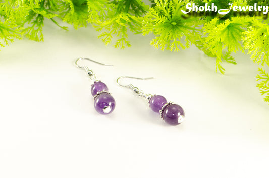 Natural Amethyst Dangle Earrings, February Birthstone Jewelry