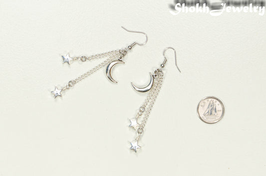 Long Crescent Moon and Hematite Star Earrings