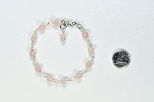Handmade 6mm Rose Quartz Link Bracelet for Women