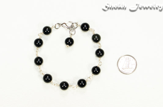 8mm Black Obsidian Link Bracelet with Clasp
