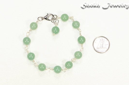 Handmade 8mm Green Aventurine Link Bracelet for Women