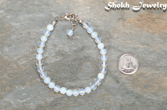 6mm Clear White Opalite Beaded Bracelet for Women