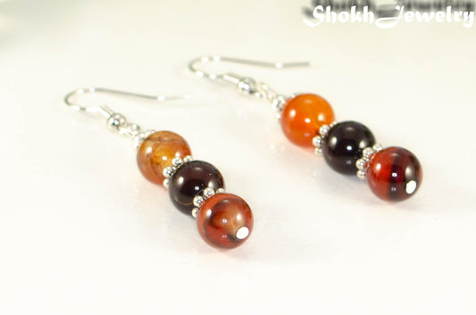 Long Gold Plated Chain and Carnelian Crystal Chip Earrings