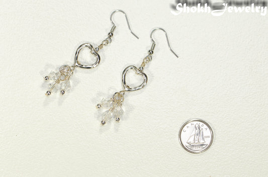 Silver Plated Heart and Clear Glass Crystal Cluster Earrings