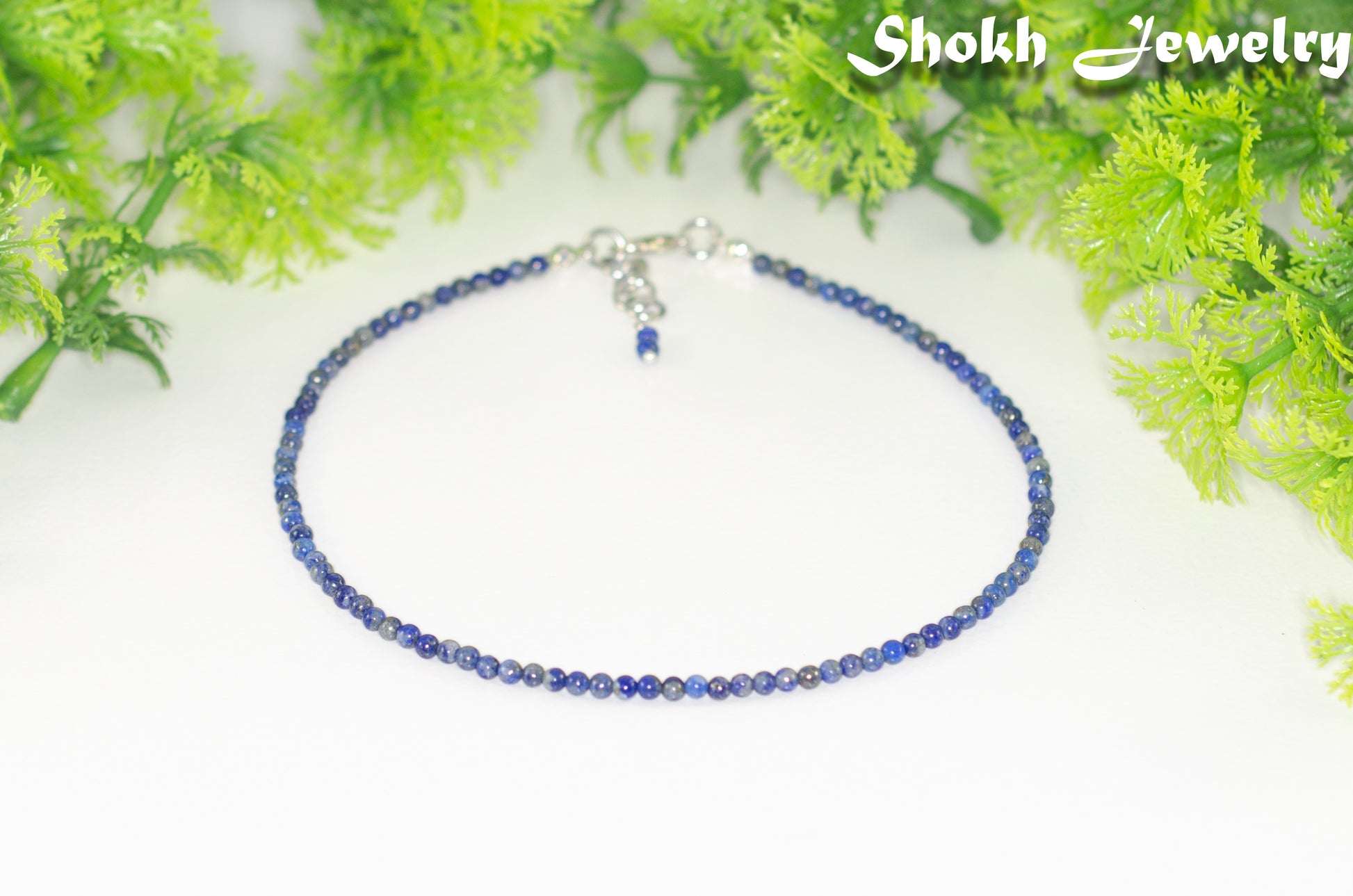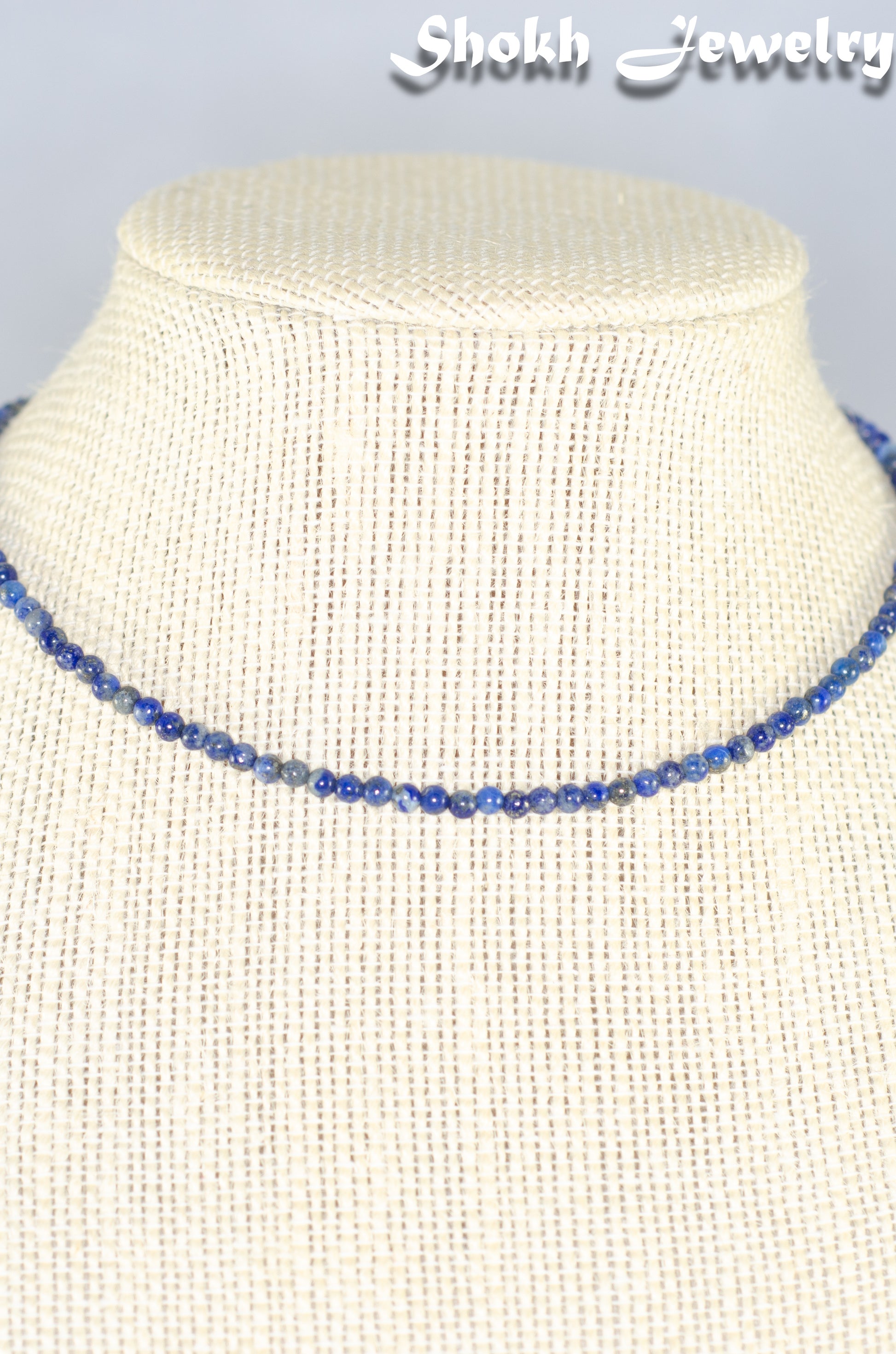 This gorgeous choker necklace is handmade with 3mm natural Lapis Lazuli beads strung on sturdy bead stringing wire, finished with a lobster clasp and 0.5-inch extender chain and a cute little dangle.